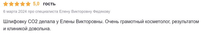 Шлифовку CO2 делала у Елены Викторовны. Очень грамотный косметолог, результатом и клиникой довольна.