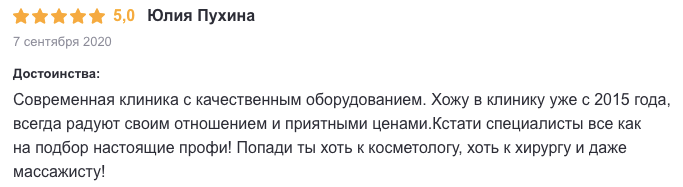 Современная клиника с качественным оборудованием. Хожу в клинику уже с 2015 года, всегда радуют своим отношением и приятными ценами.Кстати специалисты все как на подбор настоящие профи! Попади ты хоть к косметологу, хоть к хирургу и даже массажисту!