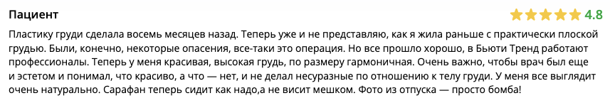 Добрый день! Мне хочется выразить свою благодарность в адрес клиники Beauty Trend, особенно выделю отделение пластической хирургии - слаженная работа ...