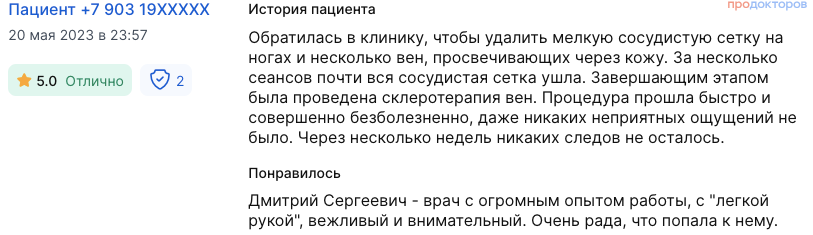 В любимой клинике появился флеболог! Сразу же записалась к Рассказову - очень грамотный врач. После курса склеротерапии ноги стали выглядеть гораздо м...