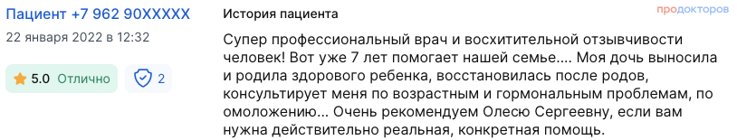 Супер профессиональный врач и восхитительной отзывчивости человек! Вот уже 7 лет помогает нашей семье.... Моя дочь выносила и родила здорового ребенка, восстановилась после родов, консультирует меня по возрастным и гормональным проблемам, по омоложению... Очень рекомендуем Олесю Сергеевну, если вам нужна действительно реальная, конкретная помощь.